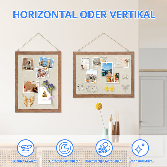 2-Pack Cork Bulletin Board with Linen 16"x12", Brown Wood Framed Corkboard for Wall