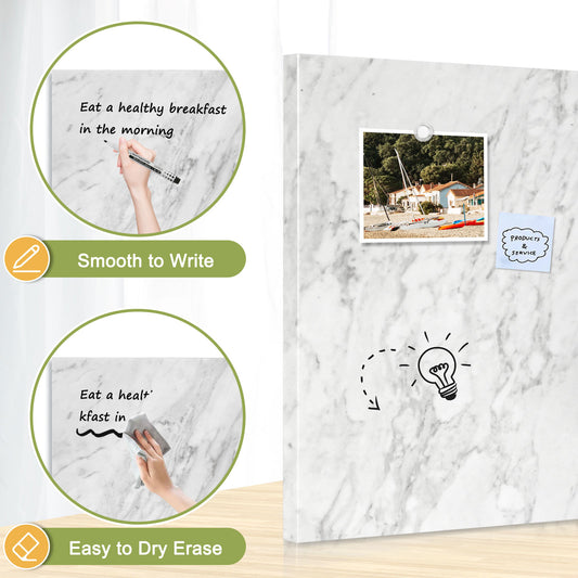Magnetic Dry Erase Board Decorative White Board for Wall with White Marble Pattern Design