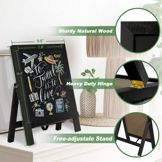 Small Tabletop Chalkboard Signs, 9.5" x 14" Magnetic Chalk Board with Stand Wood Frame-Black