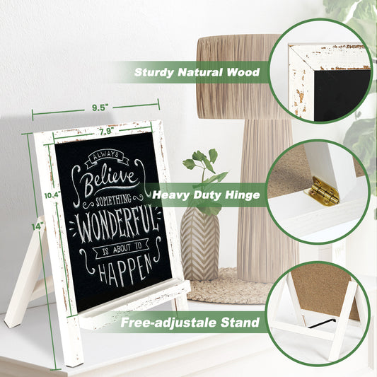 Small Tabletop Chalkboard Signs, 9.5" x 14" Magnetic Chalk board with Stand Wood Frame-White
