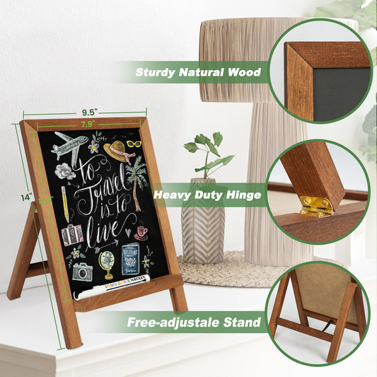 Small Tabletop Chalkboard Signs, 9.5" x 14" Magnetic Chalk Board with Stand Wood Frame-Brown