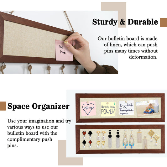 Picture Frames Collage Display Board 15.7''x 35.4'', Wooden Framed Linen Board with Pushpins and 30 Clips