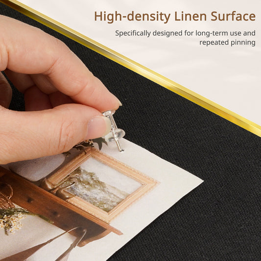 Linen Board 1-Pack 16''X 12'' Double-Sided, Wood Framed with 10 Pushpins, Black