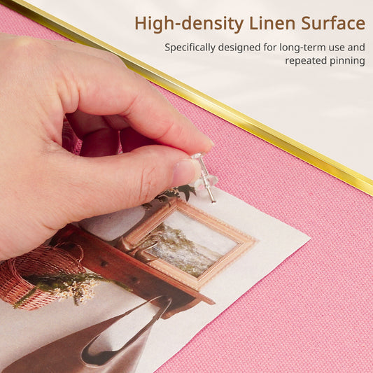 Bulletin Board with Linen Cork Board for Wall Poster Board, Pink