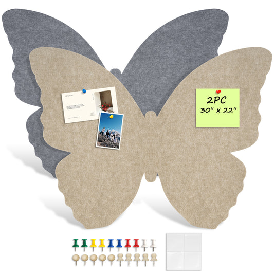 Felt Bulletin Board 2PCS Butterfly Stickers 3d Baby Wall Decor with 20 Push Pins, Latte & Grey