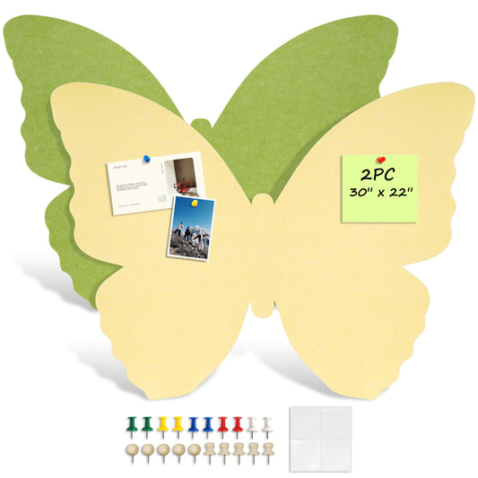 Felt Bulletin Board 2PCS Butterfly Stickers 3d Baby Wall Decor with 20 Push Pins, Green & Light Yellow