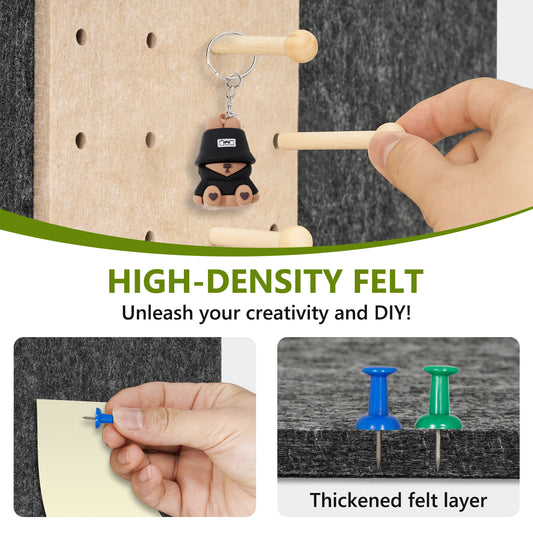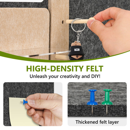 Felt Bulletin Board 24 x 16 In Foldable with Magnetic Whiteboard Dry Erase, Peg Board Acrylic Shelf, Horizonal Grey