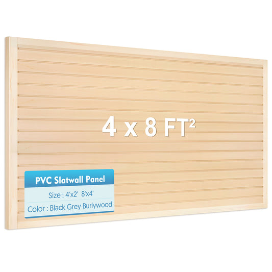 Slatwall Panels 4 ft x 8 ft Horizontal PVC Slatwall Easy Organizer Panels,48" H x 96" L - Pack of 8, Maple