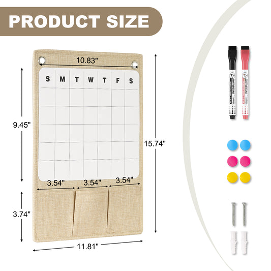 Wall Hanging Organizer Canvas with Whiteboards, Small Dry Erase White Board Wall Hanging Basket with Pockets