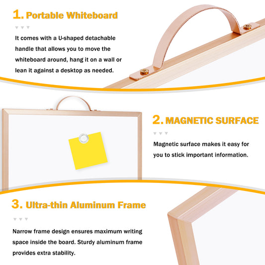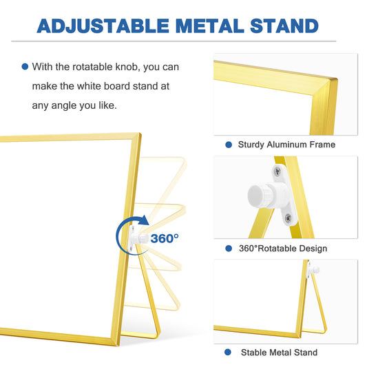 Small White Board with Stand, 16" x 12", Double-Sided with 8 Markers 8 Magnets 1 Eraser-Gold
