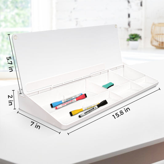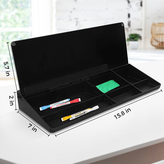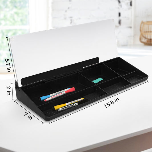 Glass Desktop Whiteboard with Storage Drawer, Black-white Box with 4 Markers 1 Eraser
