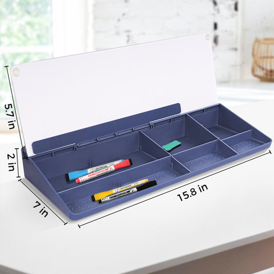 Glass Desktop Whiteboard with Storage Drawer, Blue-white Box with 4 Markers 1 Eraser