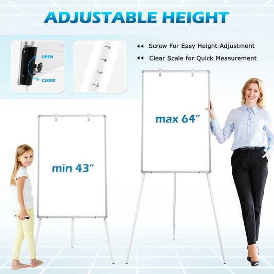 Whiteboard Easel with Tripod Stands, 36" x 24", Height Adjustable, with 8 Markers 8 Magnets 1 Eraser-Silver