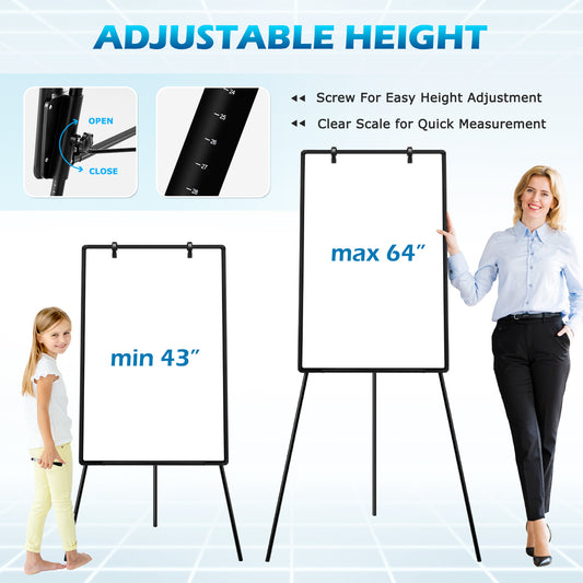 Whiteboard Easel with Tripod Stands, 36" x 24", Height Adjustable, with 8 Markers 8 Magnets 1 Eraser-Black