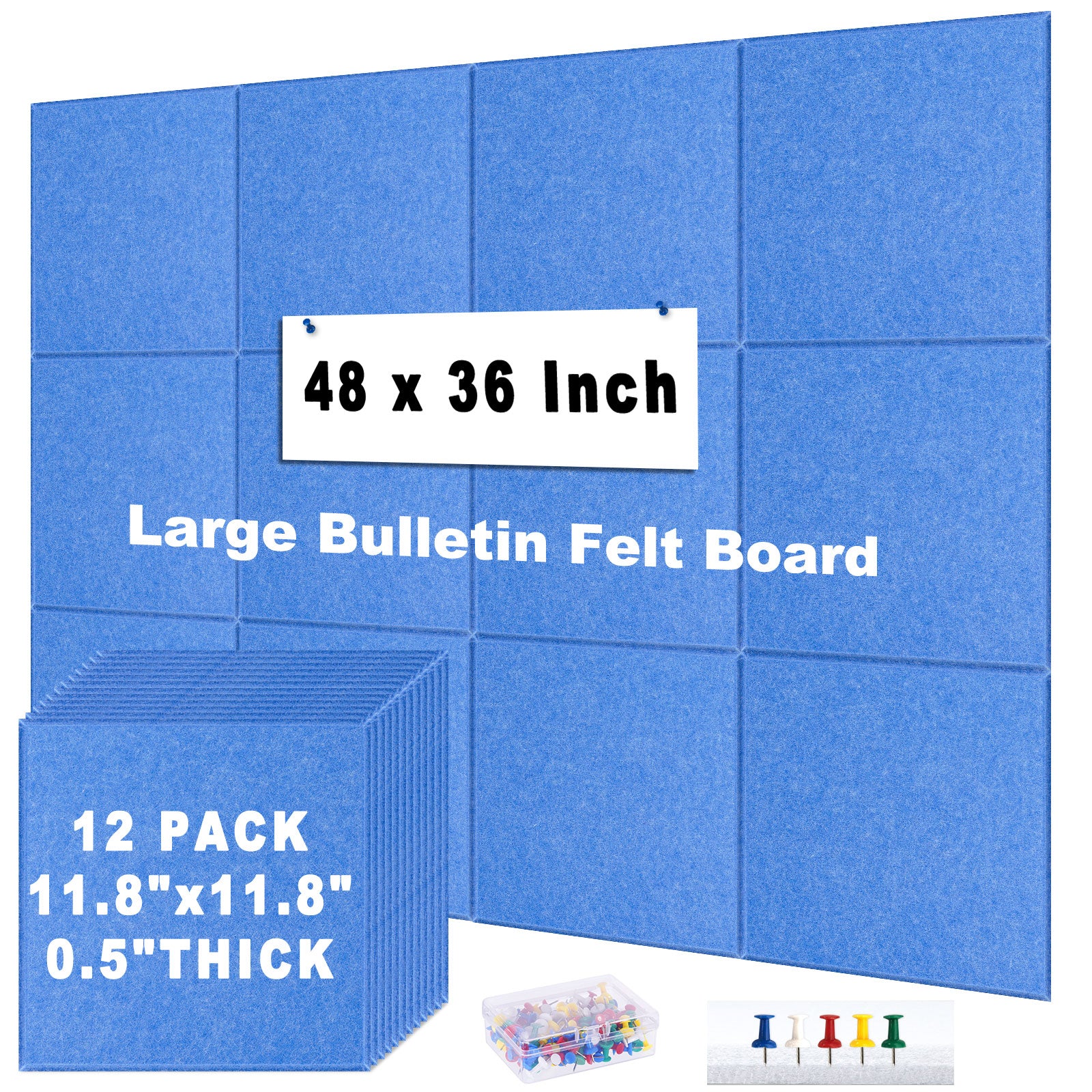 12 Packs Blue Felt Board Large Cork Bulletin Board Cork Board Wall Tiles
