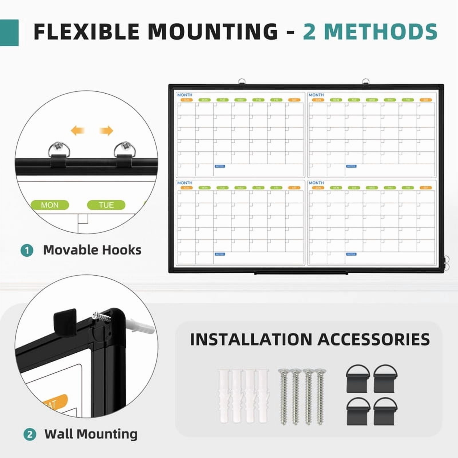 4 Monthly Calendar Whiteboard Magnetic Dry Erase Calendar Whiteboard 4 Month White Board Calendar