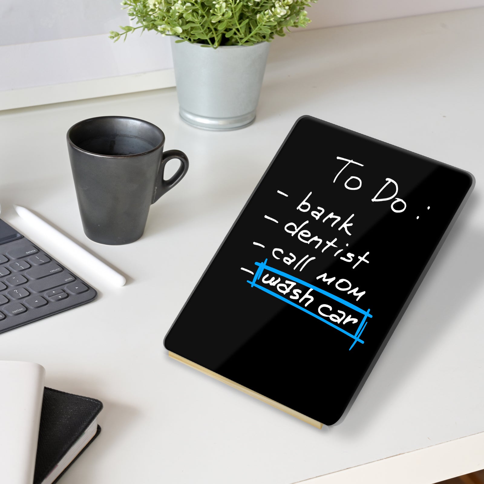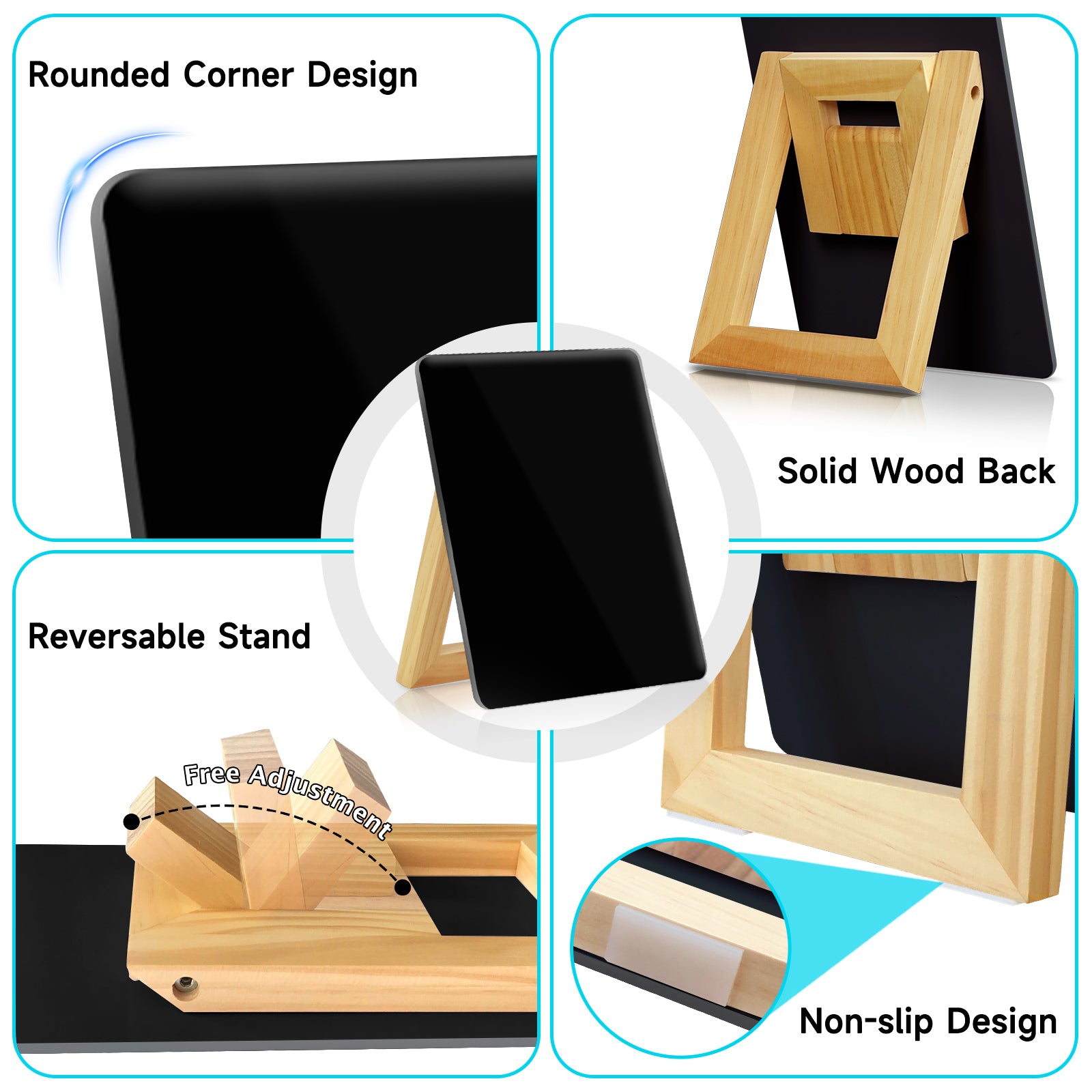 Desktop Black Glass Dry Erase Whiteboard with Reversible Wood Stand Small Whiteboard