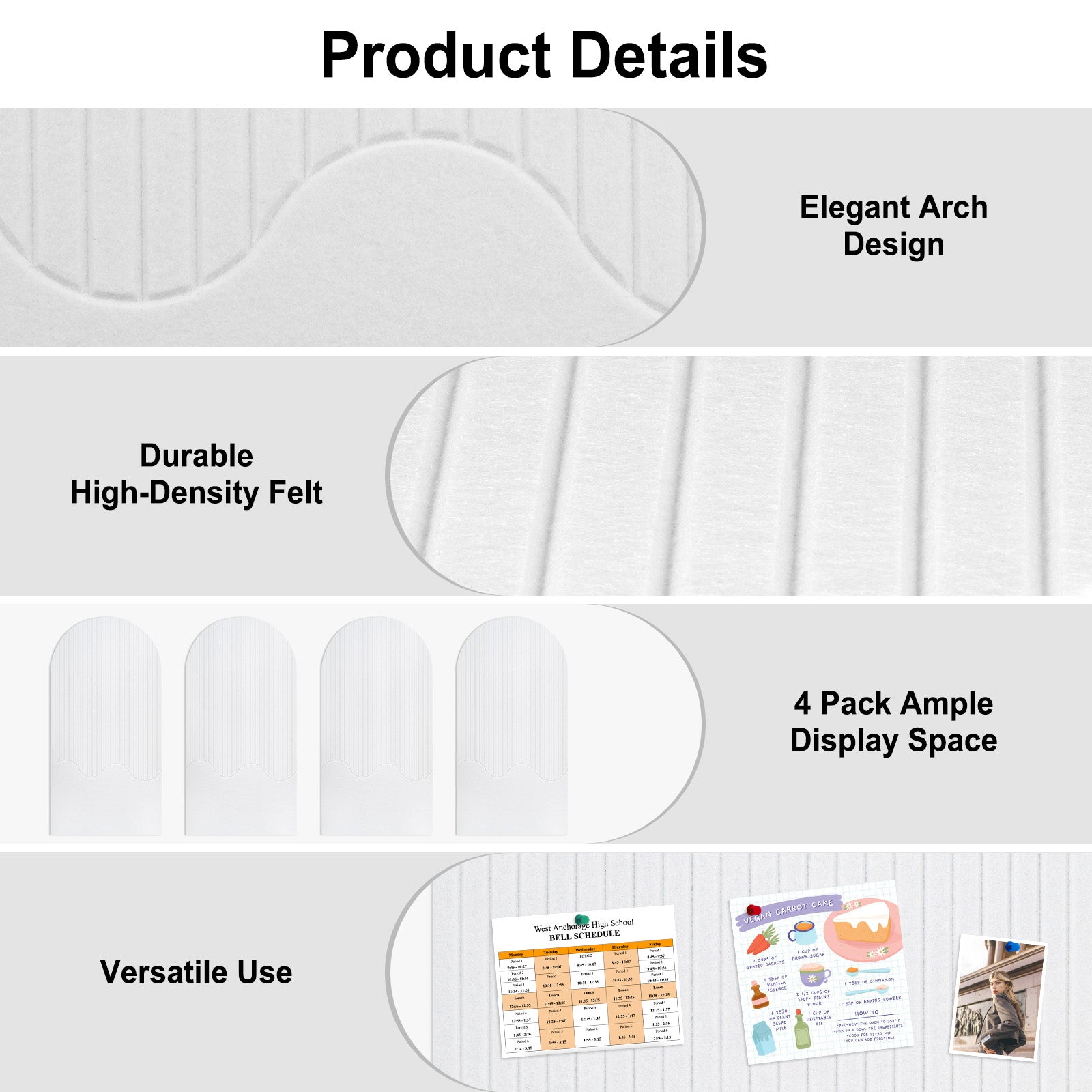 Felt Bulletin Board Push Pin Board Large Decorative Cork Boards for Walls Arch Decor Poster Board for Wall