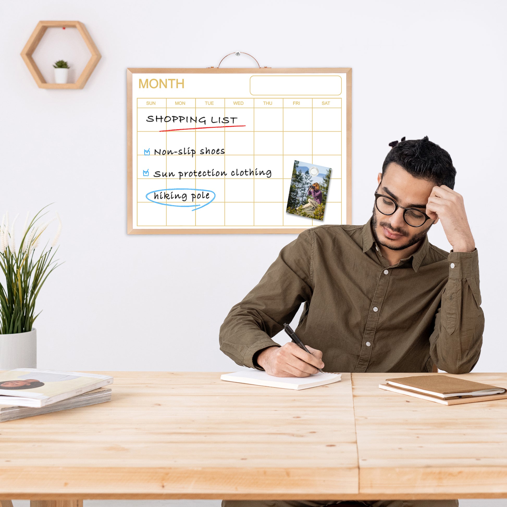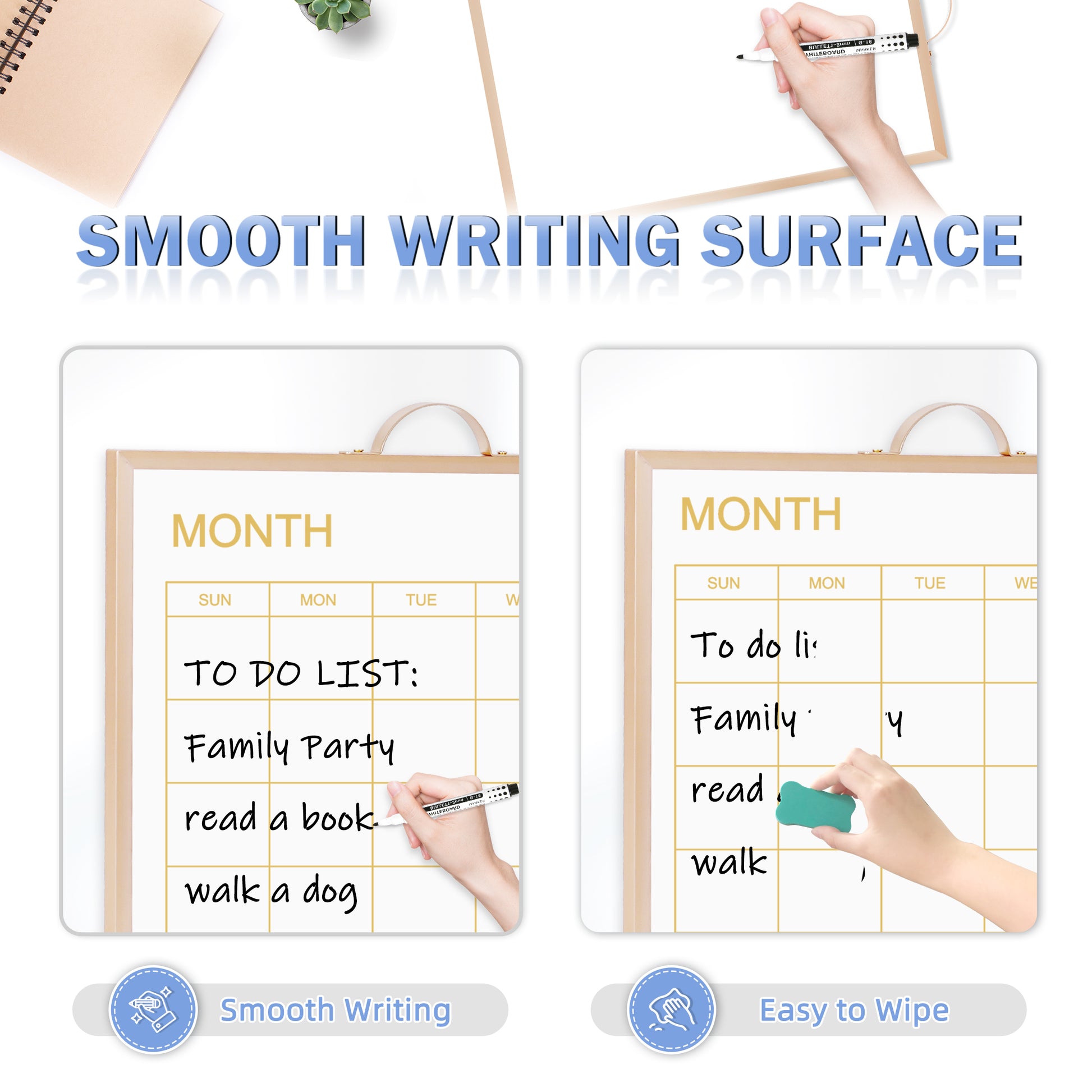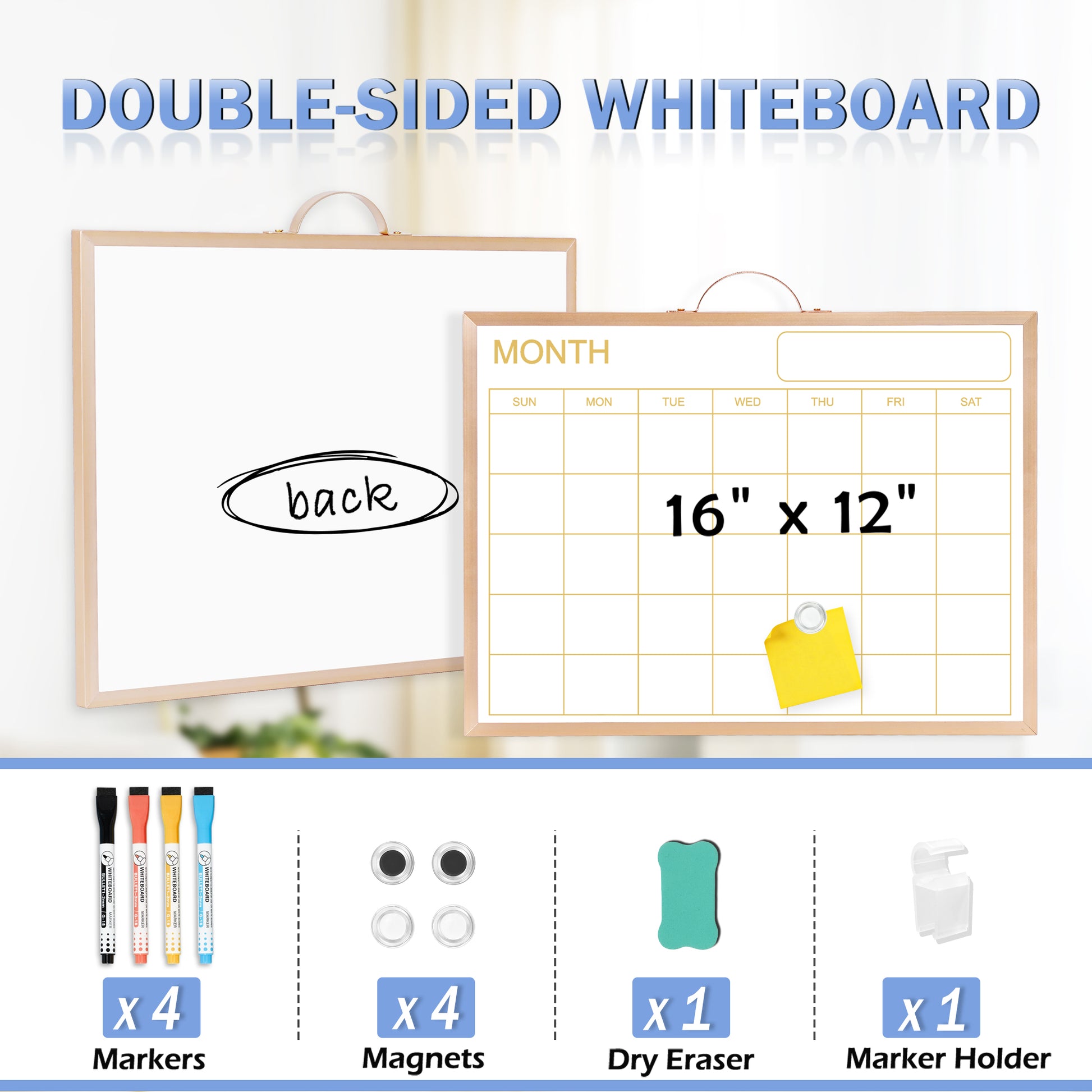 Magnetic Monthly Calendar Whiteboard, 16'' x 12'' Double Sided Dry Erase Calendar for Wall Office Home, Small Portable White Board Calendar
