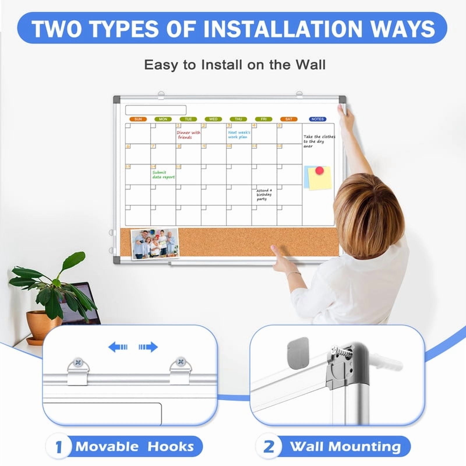 Magnetic Whiteboard Calendar Whiteboard Dry Erase Cork Board Combination Double-Sided Monthly White Boar for Wall