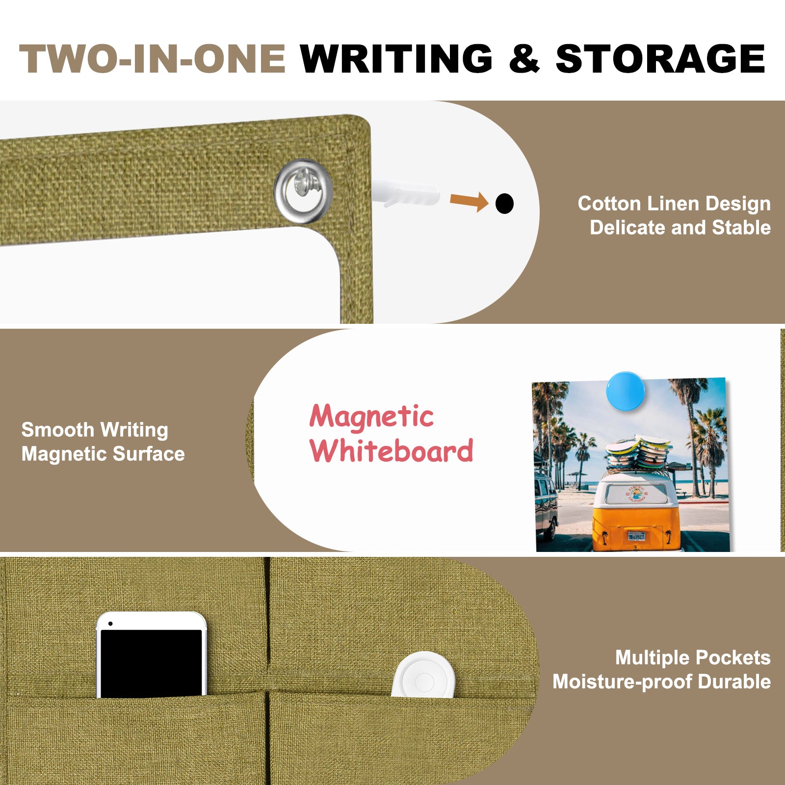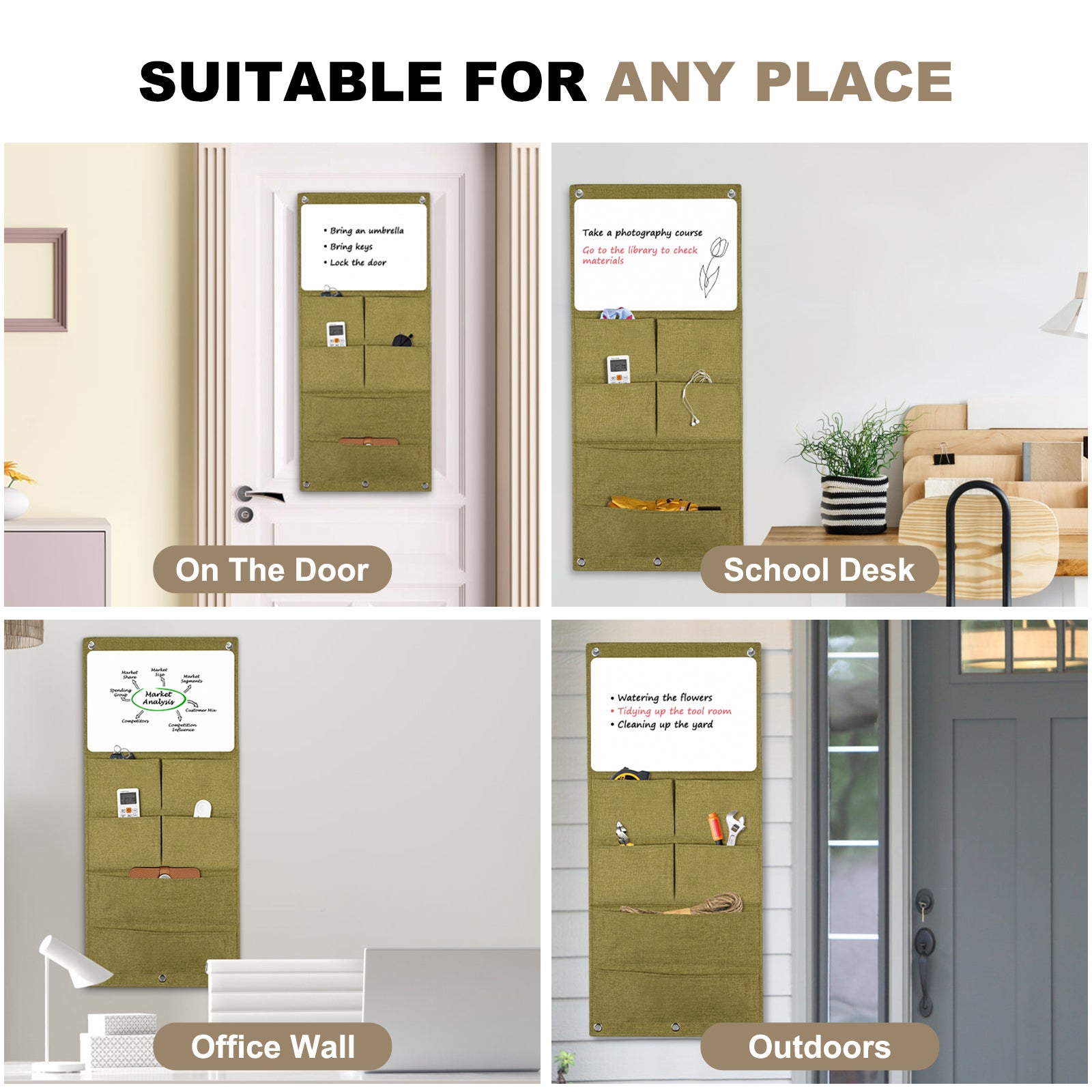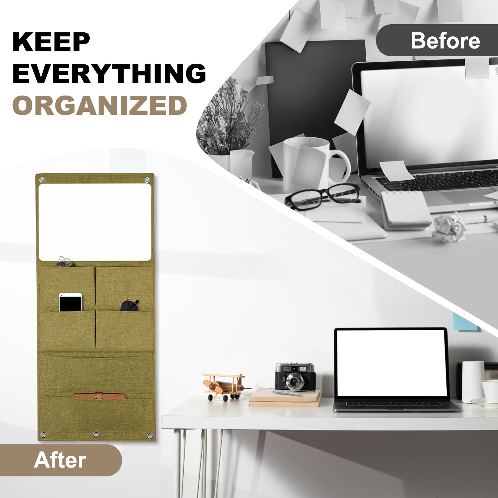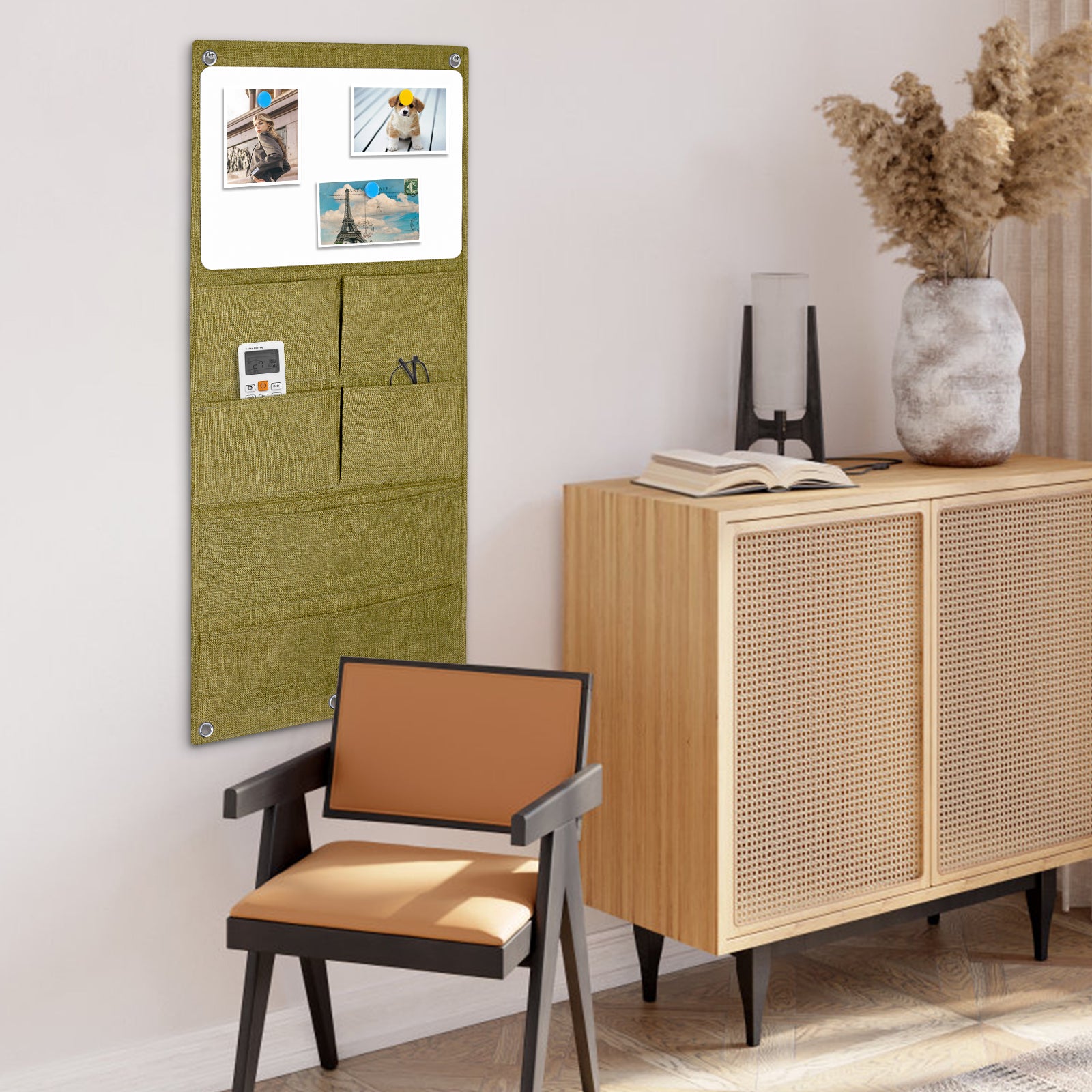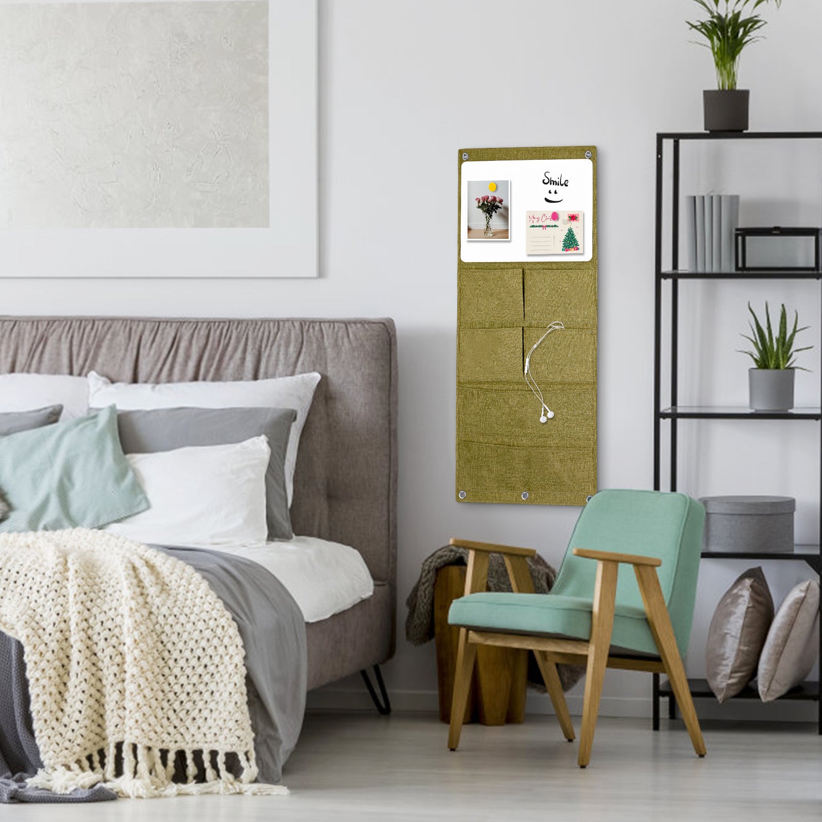 Wall Hanging Organizer Canvas with Whiteboards, Small Dry Erase White Board Wall Hanging Basket with Pockets