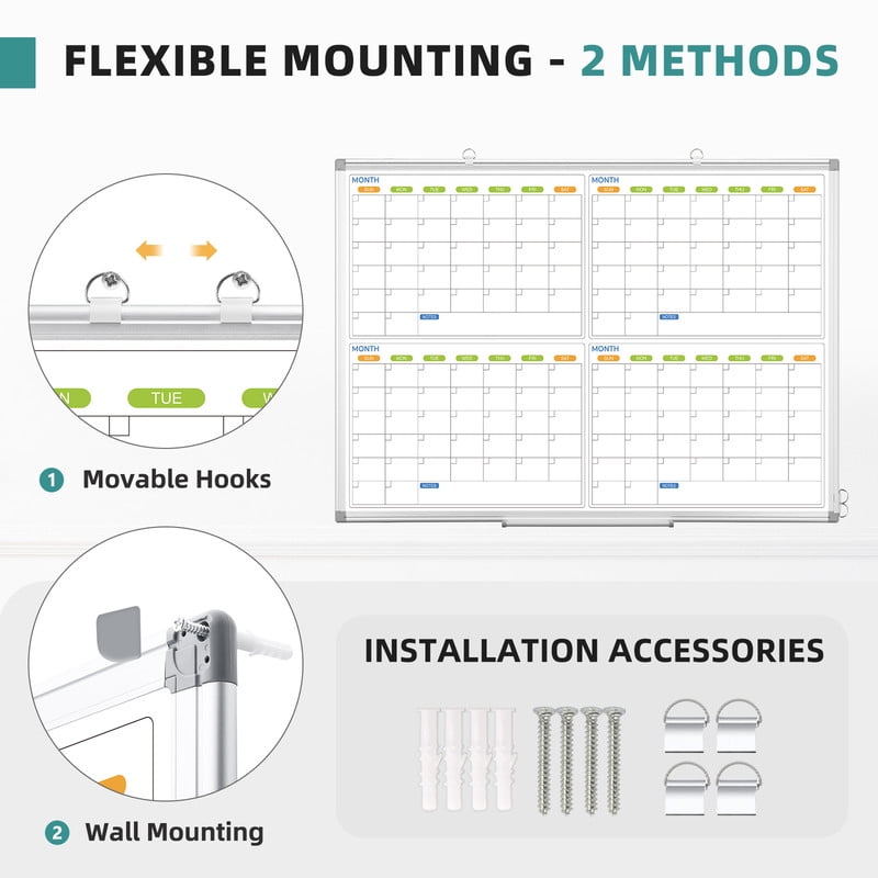White Board Calendar Dry Erase Wall Mount 4 Monthly Calendar Whiteboard 4 Month White Board Calendar Planner Schedule Board