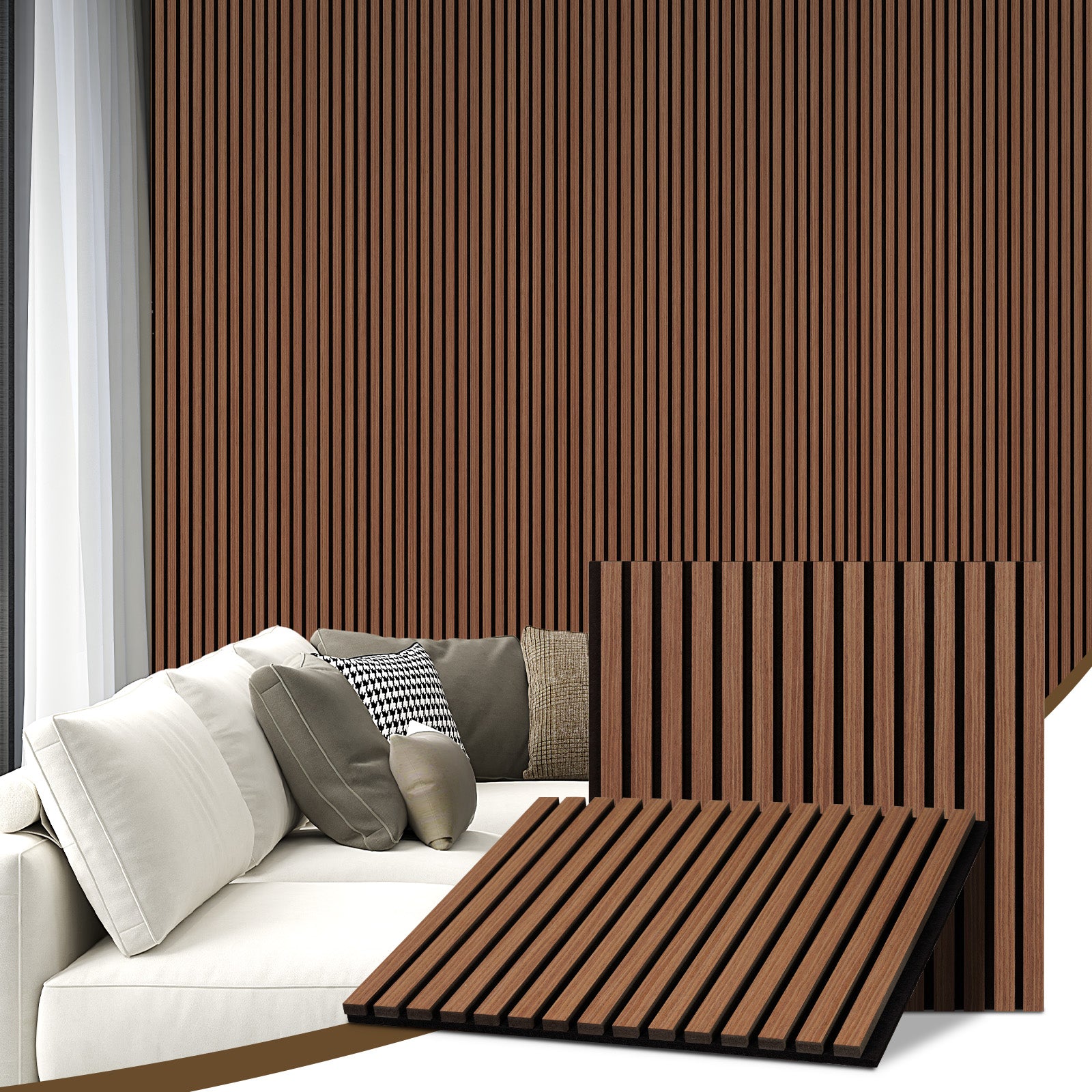 Wood Slat Acoustic Panels for Wall, 23.6" x 23.6" 2Pcs, Walnut