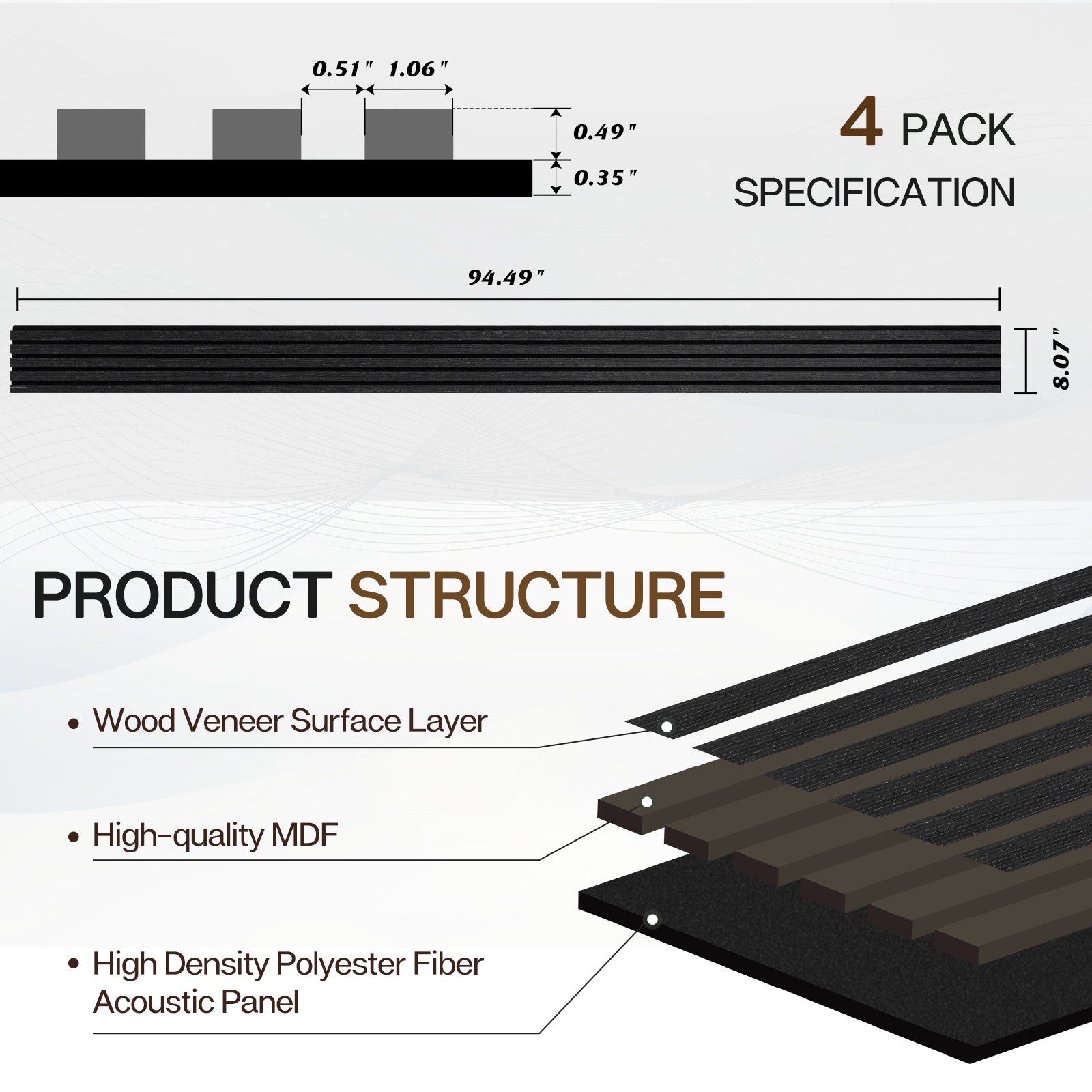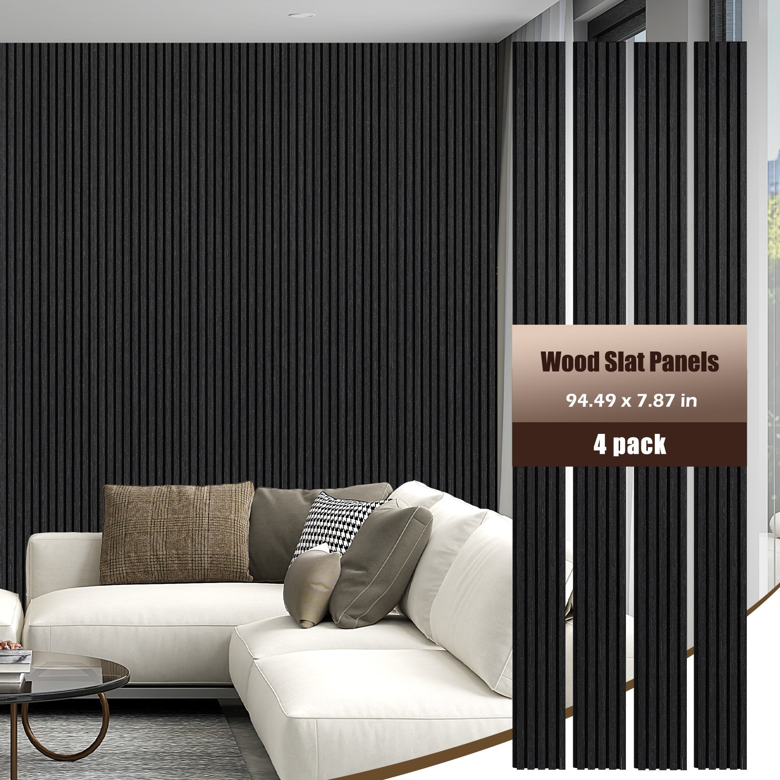 Wood Slat Acoustic Panels for Wall, 94.5" x 7.9" 4Pcs, Black Oak